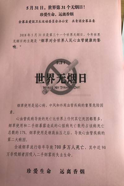 5月31日是世界第31个世界无烟日,今年的主题是“烟草和心脏病”。为进一步提高老区人民对吸烟危害的认识了解,宣传吸烟和二手烟对人类健康的危害,5月31日下午,团县委志愿服务队前往“门前三包”责任路段和香港花园小区开展无烟日宣传进小区志愿服务活动。