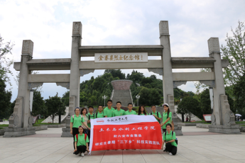 合肥工业大学土木与水利工程学院研究生实践团队紧跟时代步伐,以“聚焦十三五,走进大别山”这一主题开展了本次暑期科技实践活动,旨在重走习近平主席走过的调研路线,探访革命老区,聚焦“十三五规划”,学习新时代背景下的革命精神,共同实现“中国梦”。实践团队通过对安徽省西部的金寨县水资源、森林资源、地质资源等自然现状进行实地调查,了解当地水资源、农畜饮水安全、森林覆盖率及建筑稳定性的现状,对出现的现象及问题进行分析和解释,并结合专业知识,提出相应的对策及建议,以期将“防灾减灾”、“生态治理”的理念在金寨县推广开来。