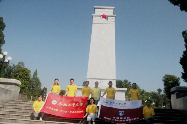 活动前期,实践团队员们在金寨县开展了为期四天的红色教育活动。队员们先后参观了金寨县革命博物馆、鄂豫皖红军纪念园、金寨县革命烈士纪念碑等多个红色教育基地,并于金寨县光荣院寻访到老兵周克美,与周爷爷进行了一天的访问。丰富的史料、珍贵的展品、生动的故事为队员们展现了老一辈革命家们在血雨腥风的年代里舍生忘死、为国奉献的高大身影,活动的过程中,队员们感触颇深,深受激励。活动第四天,适逢八一建军节,团队成员前往金寨县革命烈士纪念塔,凭吊为国捐躯的革命先烈,于纪念塔前,队员们三鞠躬、敬献鲜花,并进行了庄严的宣誓仪式。团队指导老师姚月萍寄语党支部全体成员:不忘革命烈士丰功伟绩,不负烈士遗愿,奋发图强,奋勇向前,做合格党员,做21世纪的有志青年!